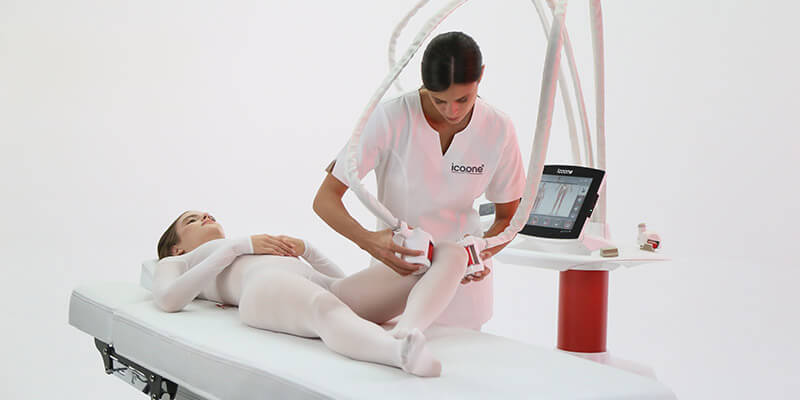 Icoone ist das einzige Gerät, das eine symmetrische Stimulation bietet und durch die Verwendung von zwei Handstücken in der Hälfte der Zeit doppelt so effektive Ergebnisse liefert.
